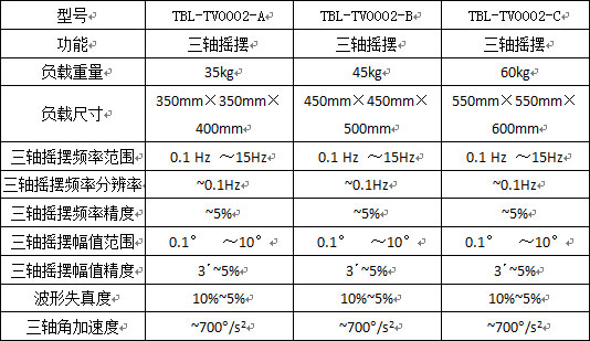 主要指标:1、TBL-T3302型系列三轴转台