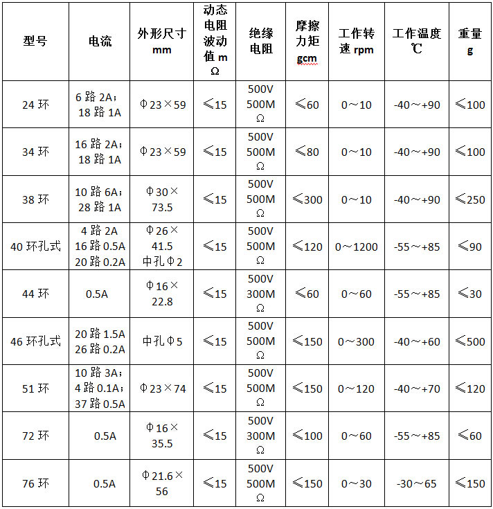 精密导电滑环主要技术指标